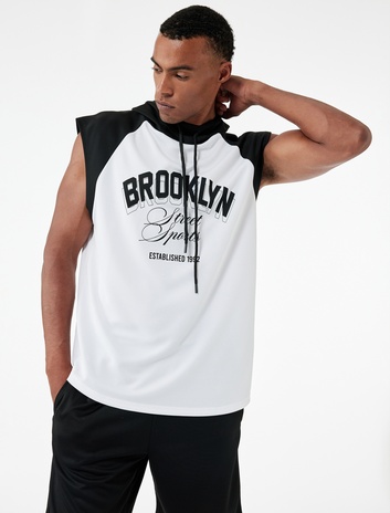 Baskılı Renk Kontrastlı Kapşonlu Kolsuz Spor Atleti