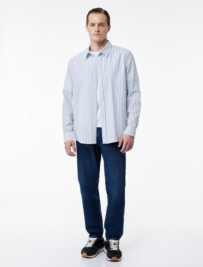 Regular Fit Klasik Yaka Pamuk Karışımlı Uzun Kollu Gömlek