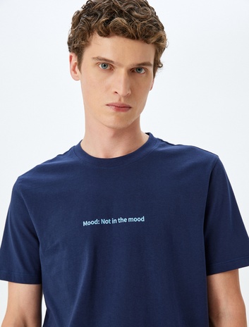 Pamuklu Bisiklet Yaka Kısa Kollu Slim Fit Slogan Baskılı Tişört