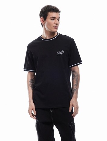 Nakış Detaylı Bisiklet Yaka Kısa Kollu Pamuklu Tişört