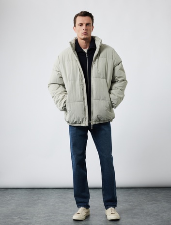 Dik Yaka Cep Detaylı Fermuarlı İçi Polarlı Kışlık Mont
