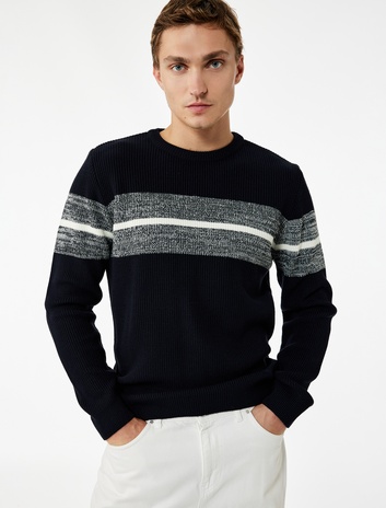 Uzun Kollu Çizgi Detaylı Bisiklet Yaka Kışlık Triko Kazak Sepete Ekle