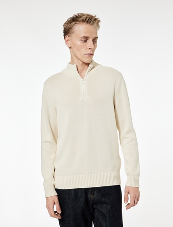{ "id": "8684632383384", "name": "Pamuklu Uzun Kollu Yarım Fermuarlı Triko Kazak", "taxonomy":["MENSWEAR","SMART","MEN","KNITWEAR","SWEATERS"], "currency": "TRY", "unit_price": 1299.99 , "unit_sale_price": 1299.99 , "url": "https://www.koton.com/pamuklu-uzun-kollu-yarim-fermuarli-triko-kazak-ekru-4040848/", "stock": 28, "color": "EKRU", "size": "S", "product_image_url": "https://ktnimg2.mncdn.com/products/2025/10/14/3136376/abf8e07b-1715-4a65-a1a0-8f6d5f792d98.jpg" }