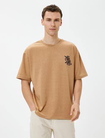 Slogan Baskılı Tişört Bisiklet Yaka Kısa Kollu Pamuklu