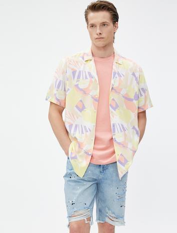 Çiçekli Baskılı Gömlek Kısa Kollu Devrik Yaka Sepete Ekle