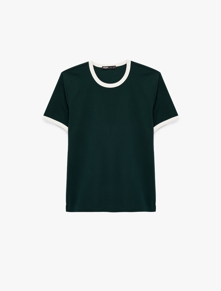Kısa Kollu Biyeli Pamuklu Bisiklet Yaka Slim Fit Tişört Sepete Ekle