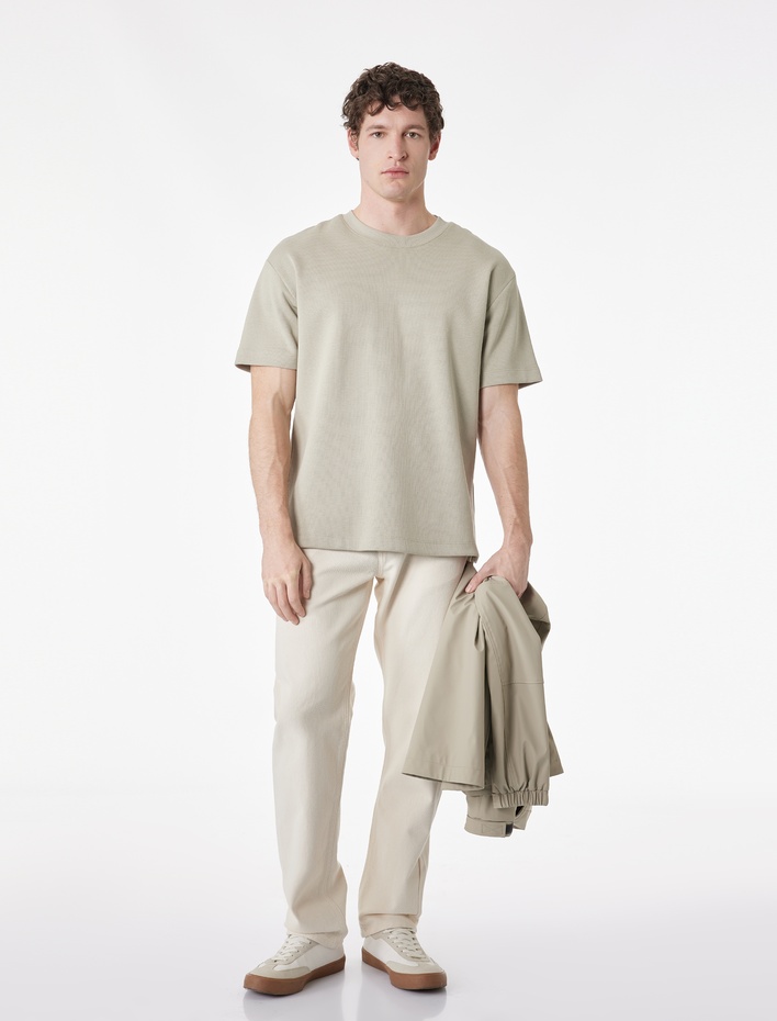Regular Fit Kısa Kollu Dokulu Bisiklet Yaka Tişört Sepete Ekle