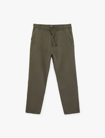 Pamuklu Cepli Straight Fit Beli Bağcıklı Düğmeli Pantolon Sepete Ekle