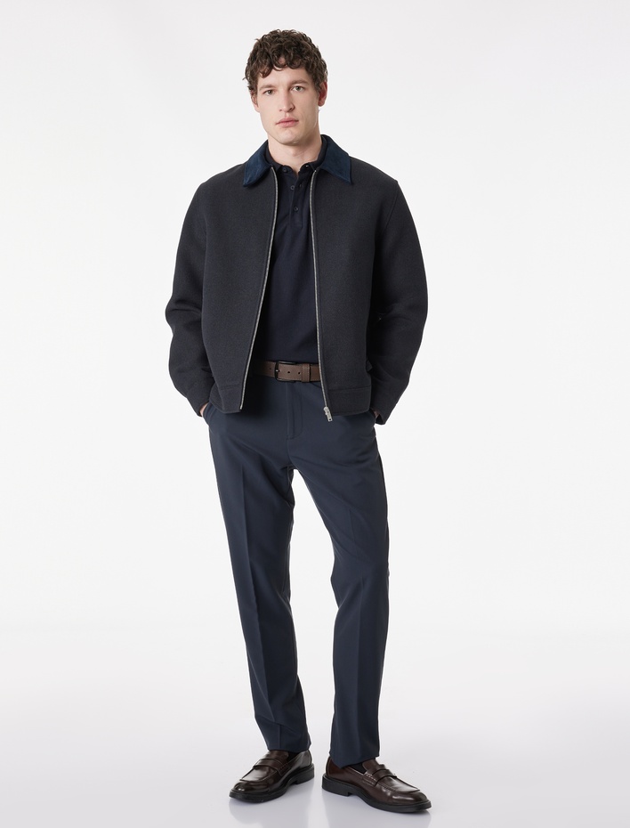 Regular Fit Uzun Kollu Cepli Fitilli Yaka Detaylı Fermuarlı Kaşe Ceket Sepete Ekle