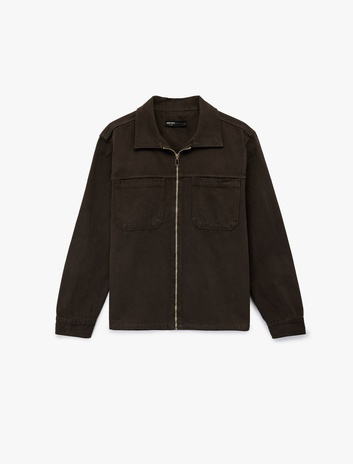 Regular Fit Uzun Kollu Cep Detaylı Fermuarlı Gömlek Ceket Sepete Ekle