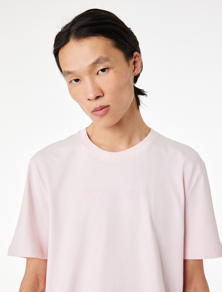Kısa Kollu Bisiklet Yaka Pamuklu Nakışlı Arkası Baskılı Tişört Sepete Ekle
