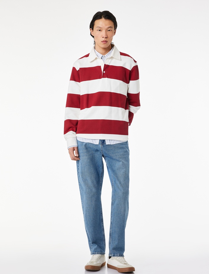 Regular Fit Pamuklu Çizgi Detaylı Polo Yaka Kısa Kollu Triko Tişört