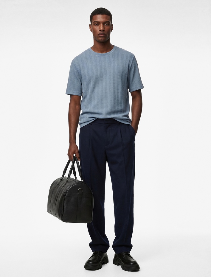 Regular Fit Kısa Kollu Dokulu Tok Kumaş Bisiklet Yaka Tişört
