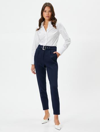 Kumaş Cigarette Pantolon Kemer Detaylı Cepli