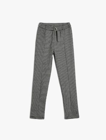 Kız Çocuk Kışlık Pantolon Tayt Nervürlü Kemer Detaylı Kazayağı Desenli Yumuşak Dokulu