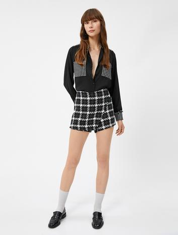 Şifon Gömlek Kazayağı Desenli Tüvit Cep Detaylı Uzun Kollu Düğmeli