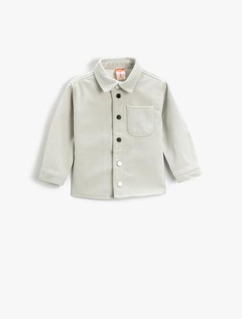 Erkek Bebek Fitilli Kadife Gömlek Tek Cepli Uzun Kollu Parlak Düğmeli