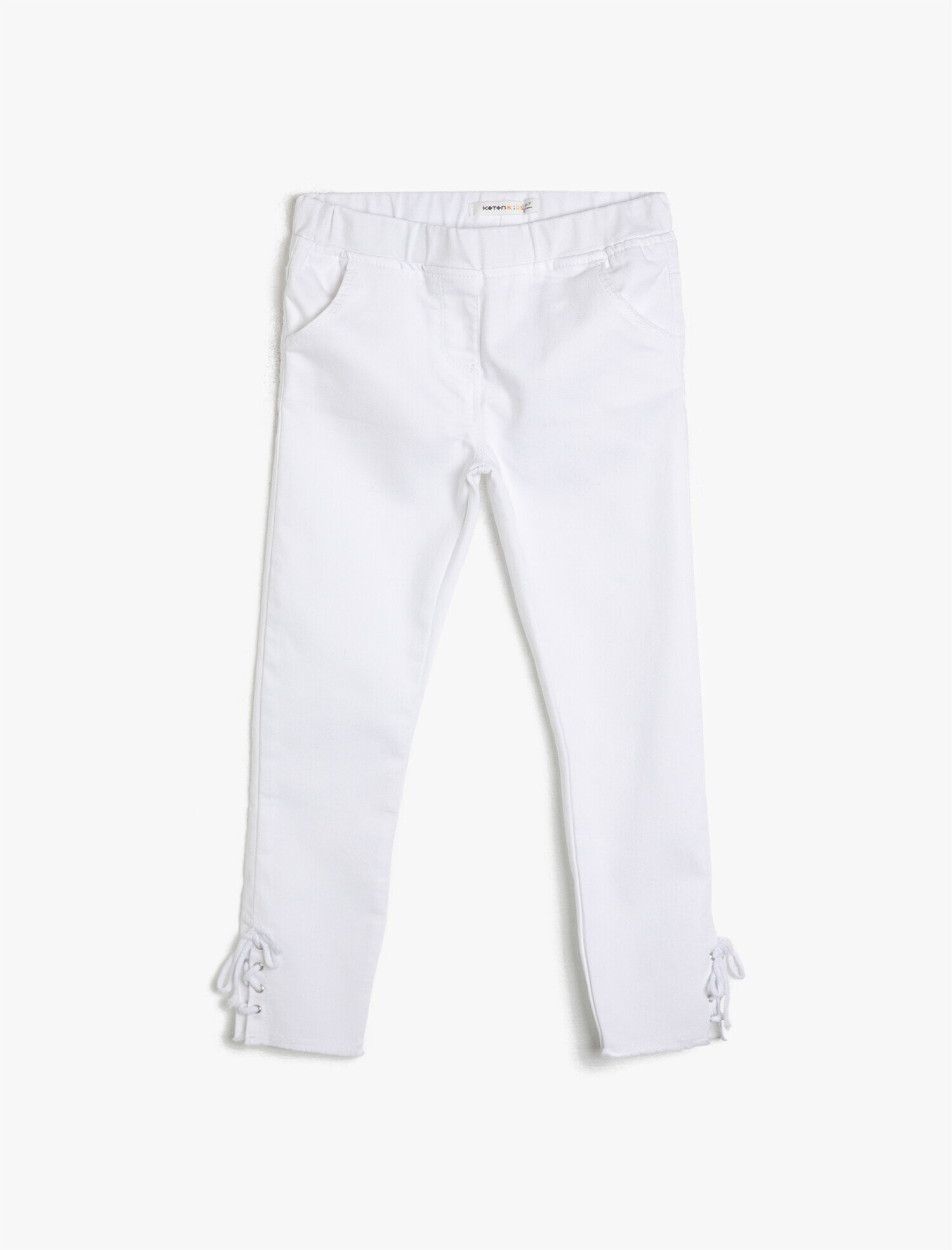 Kız Çocuk Esnek Pantolon Kumaşından Beli Lastikli Paçası Normal Bel Uzun Pantolon