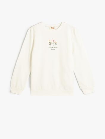 Sweatshirt Uzun Kollu Bisiklet Yaka Aplike Detaylı Şardonlu Sepete Ekle