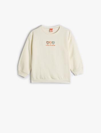 Kız Bebek Sweatshirt Uzun Kollu Bisiklet Yaka Kalp Baskılı Şardonlu Pamuklu