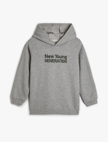 Erkek Çocuk Kapşonlu Sweatshirt Slogan Baskılı Uzun Kollu Şardonlu