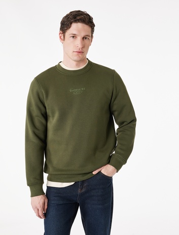 Regular Fit Uzun Kollu Nakışlı Şardonlu Yarım Fermuarlı Sweatshirt