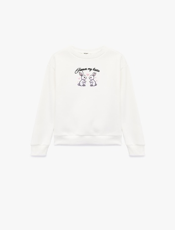 Tavşan Baskılı Uzun Kollu Bisiklet Yaka Şardonlu Sweatshirt Sepete Ekle