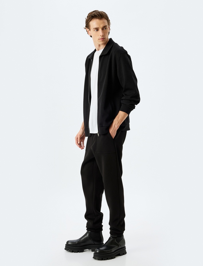 Pamuklu Cepli Nervür Detaylı Beli Bağcıklı Eşofman Altı Sepete Ekle