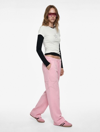 Yıldız Aplike Detaylı Beli Bağcıklı Rahat Kalıp Geniş Paça Eşofman Altı