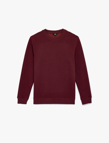 Uzun Kollu Regular Fit Waffle Dokulu Bisiklet Yaka Sweatshirt