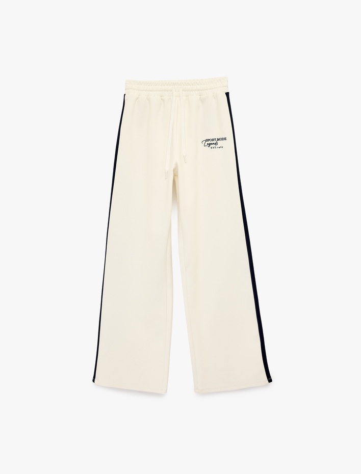 Biyeli Beli Bağcıklı Pamuklu Rahat Kalıp Nakış Detaylı Eşofman Altı Sepete Ekle