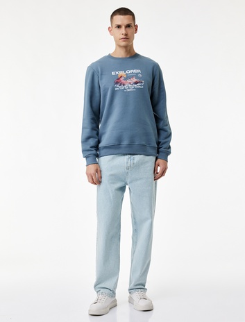 Uzun Kollu Bisiklet Yaka Pamuklu Baskılı Sweatshirt