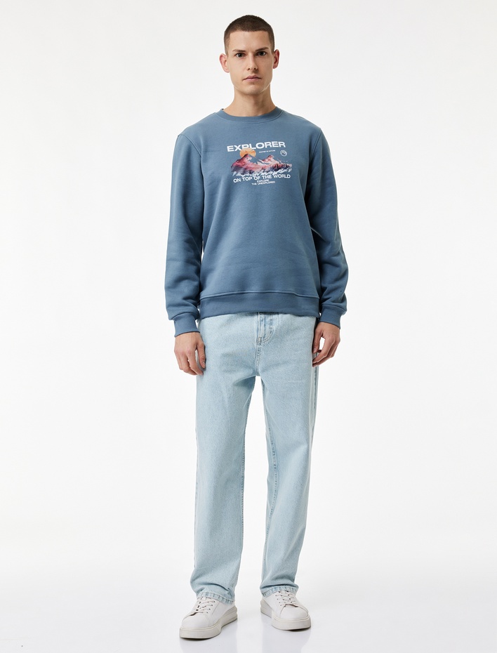 Uzun Kollu Regular Fit Şardonlu Bisiklet Yaka Baskılı Sweatshirt