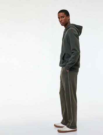 Pamuklu Cepli Çizgi Detaylı Beli Bağcıklı Eşofman Altı