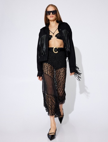 Leopar Desenli Midi Boy Asimetrik Transparan Dantel Etek Sepete Ekle