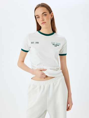 Bisiklet Yaka Biyeli Arkası Baskılı Kısa Kollu Tişört Sepete Ekle