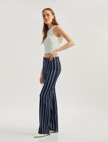 Çizgili Beli Lastikli Geniş Paça Pantolon Bürümcük