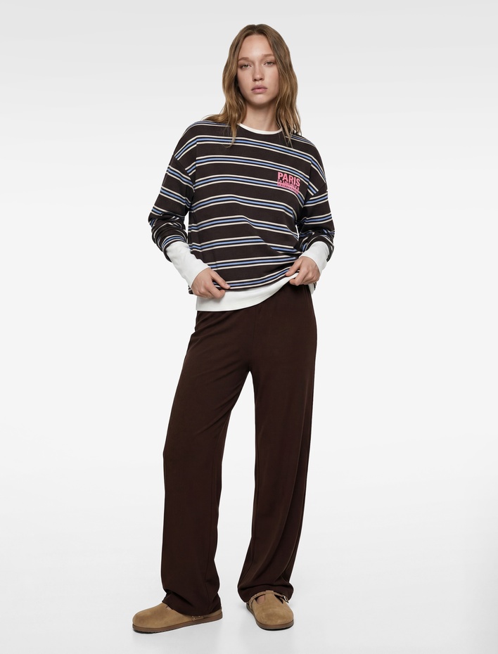 Viskon Kumaş Rahat Kalıp Lastik Detaylı Çizgili Pijama Altı