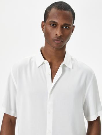 Yazlık Gömlek Kısa Kollu Klasik Yaka Düğmeli Viskon Kumaş Regular Fit