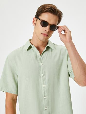 Uzun Kollu Gömlek Düğmeli Keten Karışımlı Regular Fit