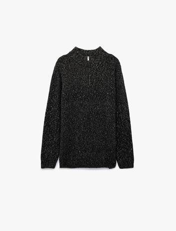 Uzun Kollu Polo Yaka Yarım Fermuarlı Kışlık Triko Kazak