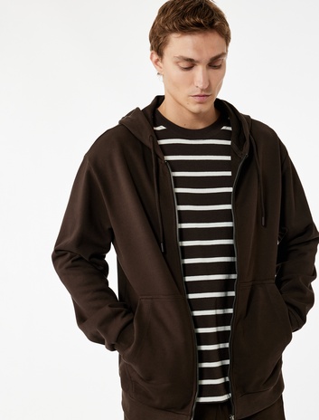 Cep Detaylı Şardonlu Fermuarlı Pamuklu Basic Kapşonlu Sweatshirt Sepete Ekle