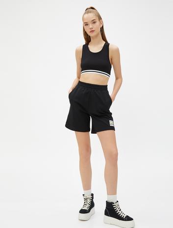 Mini Şort Beli Kalın Lastikli Cepli Etiket Detaylı