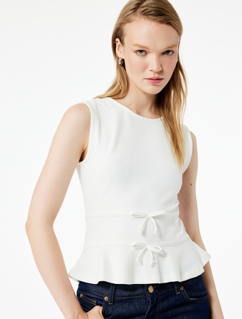 Slim Fit Bisiklet Yaka Volanlı Fiyonklu Kolsuz Bluz Sepete Ekle