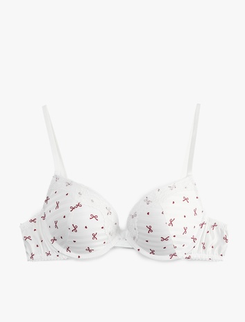 Destekli Dantel Detaylı Ekstra Dolgulu Fiyonk Baskılı Saten Sütyen