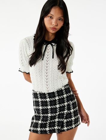 Kısa Kollu Bebe Yaka Fiyonklu Ajurlu Triko Kazak