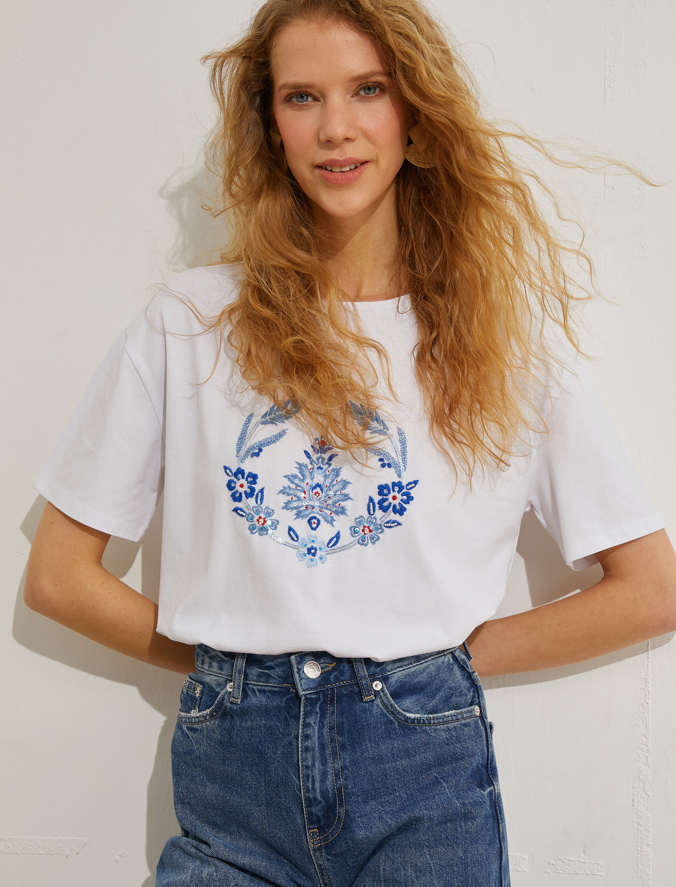 El Emeği Koleksiyonu | Kısa kollu, bisiklet yaka, pamuklu, geleneksel nakışlı tişört. Koton El Emeği Koleksiyonu, kadınların el emekleri sayesinde aracısız gelir elde etmesini, sosyal hayata katılmasını ve mesleki gelişimini destekliyor.