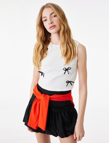 Slim Fit Bürümcük Asimetrik Kolsuz Bluz Sepete Ekle