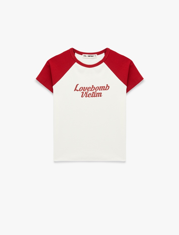 Rahat Kalıp Biyeli Kısa Kollu Bisiklet Yaka Pamuklu Kolej Baskılı Tişört Sepete Ekle