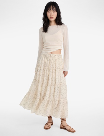 Çiçekli Beli Lastikli Viskon Uzun Etek Sepete Ekle